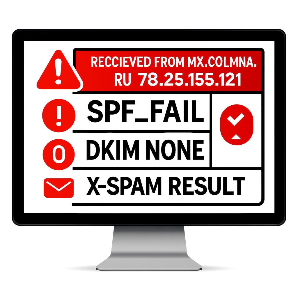 el correo fue enviado desde servidores extranjeros —principalmente de Rusia y México— y no pasó las verificaciones de seguridad SPF ni DKIM, lo que significa que el remitente fue falsificado.